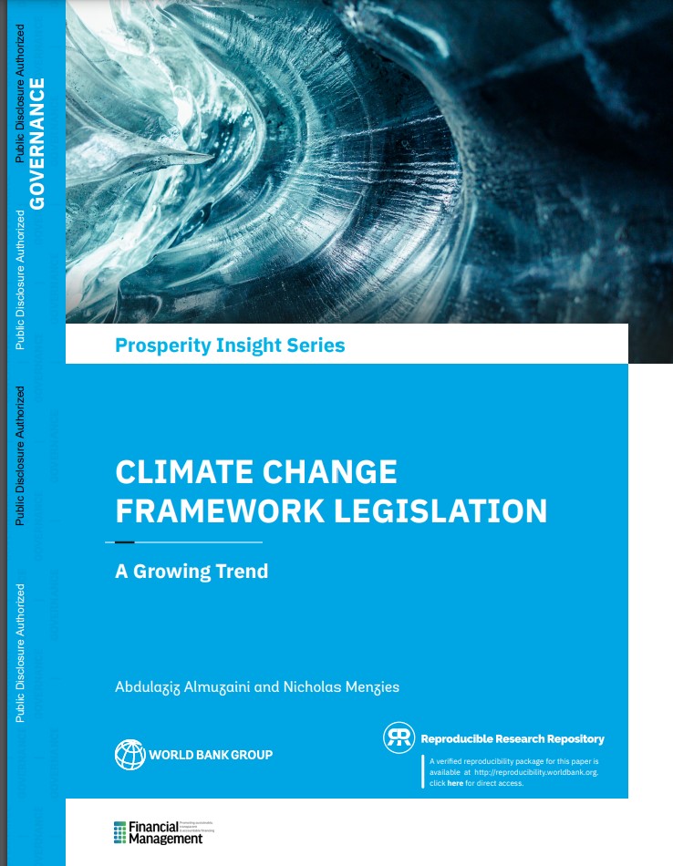 “Almuzaini, Abdulaziz; Menzies, Nicholas. 2024. Climate Change Framework Legislation: A Growing Trend. Prosperity Insight Series. © World Bank. http://hdl.handle.net/10986/42532 License: CC BY-NC 3.0 IGO.”