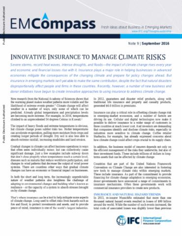 As part of the Economics and Private Sector Development Vice Presidency, IFC’s Thought Leadership regularly publishes EM Compass Notes as part of its regular work program that includes the dissemination of knowledge, trends and emerging solutions on topics and issues that are of specific interest to companies, multilateral development institutions and regulators. Its purpose is to generate fresh ideas about business in emerging markets. The Notes range from usually 4-8 pages and are geared toward clients and private investors, in addition to the traditional development community.